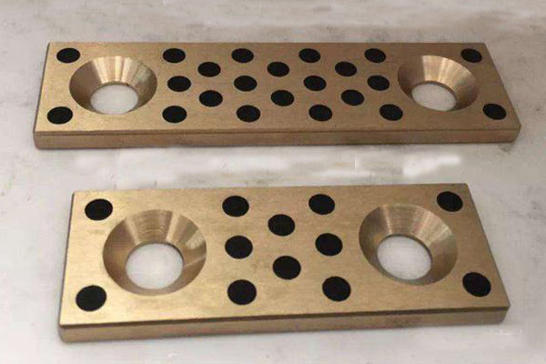 銅合金鑲嵌式固體潤滑復(fù)合滑板是以高強(qiáng)銅合金為基體,鑲嵌固體潤滑劑的一高性能固體潤滑產(chǎn)品。它突破了一般銅導(dǎo)板襯板依靠油膜潤滑的局限性。固體潤滑復(fù)合滑板在使用過程中,通過摩擦熱使固體潤滑劑與軸摩擦,形成油、粉末并存潤滑的優(yōu)異條件,既保護(hù)軸不磨損,又使固體潤滑特性永恒。