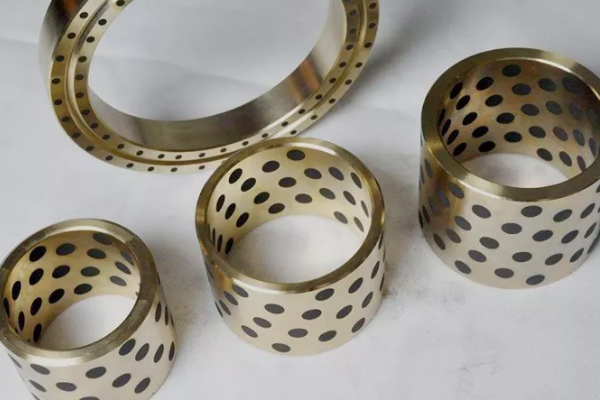 固體鑲嵌潤滑軸承突破了一般軸承依靠油膜潤滑的局限性。在使用過程中,通過摩擦熱使固體潤滑劑與軸摩擦,形成油、粉末并存潤滑的優(yōu)異條件,既保護(hù)軸不磨損,又使固體潤滑特性永恒。它的硬度比一般銅套高一倍,耐磨性能也高一倍。